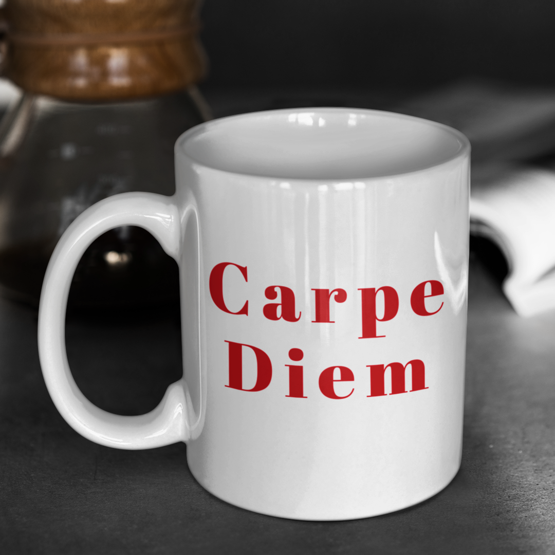 Uma estampa minimalista e impactante, onde a frase "Carpe Diem" se destaca em uma tipografia elegante e moderna. Sem distrações, o design foca inteiramente na mensagem poderosa de aproveitar o dia, inspirando a viver o presente ao máximo. Ideal para aqueles que buscam motivação diária através da simplicidade e estilo.