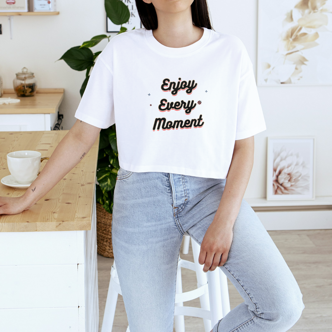 Eleve seu estilo com o Cropped Enjoy Every Moment WA! Perfeito para quem aprecia simplicidade e impacto, este cropped traz uma estampa única focada exclusivamente na escrita. Feito com material de alta qualidade, ela oferece conforto e durabilidade, ideal para o uso diário. A frase "Enjoy Every Moment" é impressa com um design moderno e minimalista, que se destaca em qualquer ocasião. Seja para inspirar sua criatividade ou para adicionar um toque de personalidade ao seu guarda-roupa, o Cropped Enjoy Every Moment WA é a escolha perfeita. Disponível em várias cores e tamanhos, ele se adapta ao seu estilo e é um excelente presente para amigos e familiares. Imagine, inspire e vista-se com estilo!