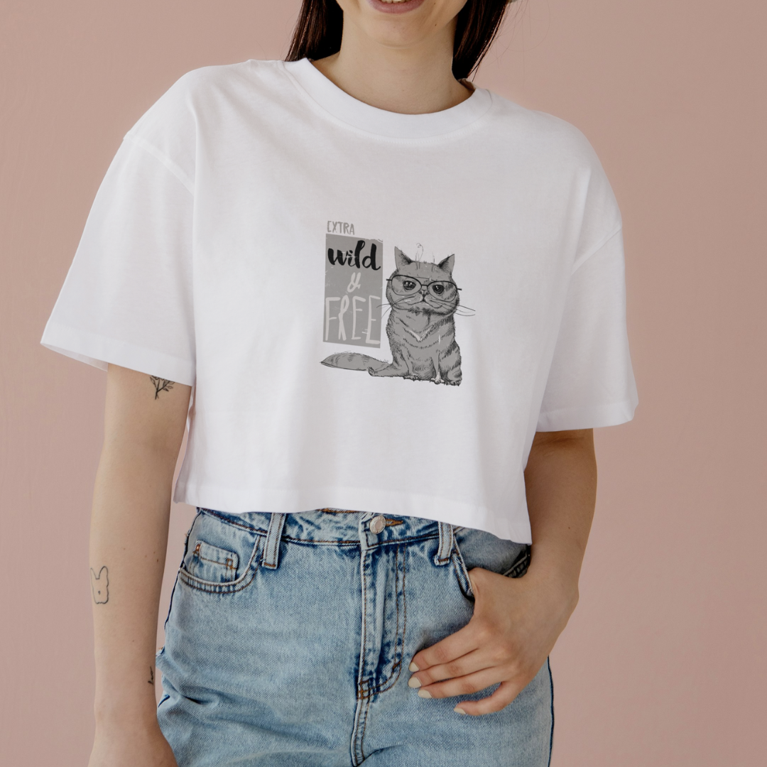 Liberte seu lado selvagem e mostre seu amor pelos gatos com o Cropped Extra Wild & Free!