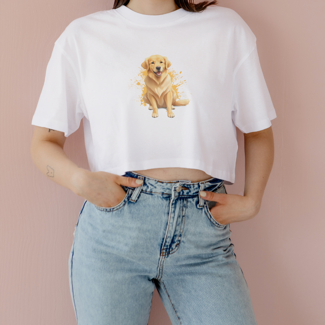 Mostre seu amor pelos pets com estilo! Nosso exclusivo Cropped Golden transforma seu guarda-roupa e o coração de quem a vê. Com uma estampa única, esta camiseta é perfeita para quem ama os amigos de quatro patas.