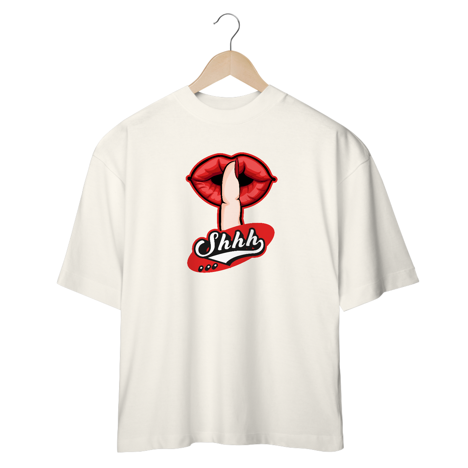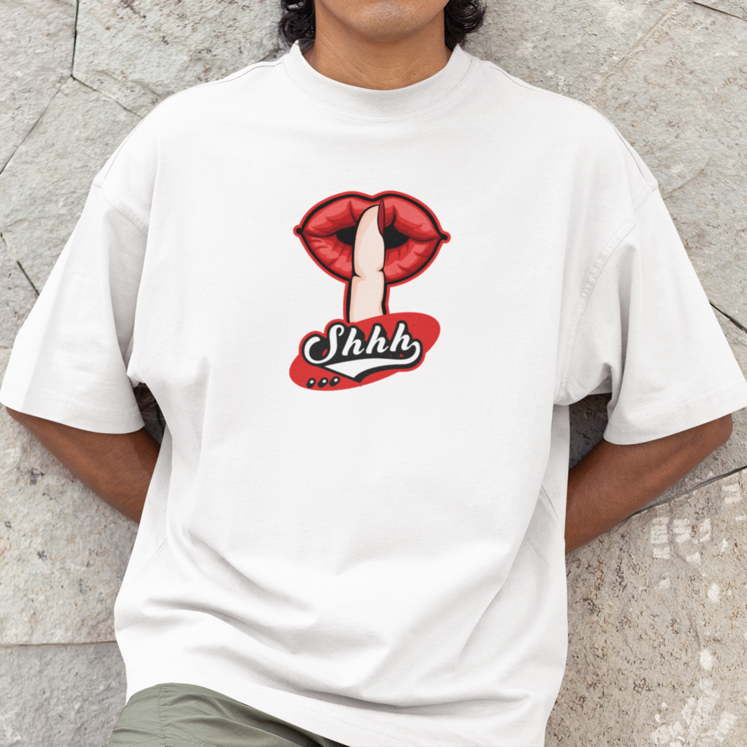 Transmita uma mensagem sutil, porém poderosa, com a nossa T-Shirt Oversized "Shhh." Uma forma direta de dizer "fique quieto" sem precisar falar. Com a T-Shirt Oversized"Shhh.", você pode comunicar de forma criativa e visual a importância do silêncio.