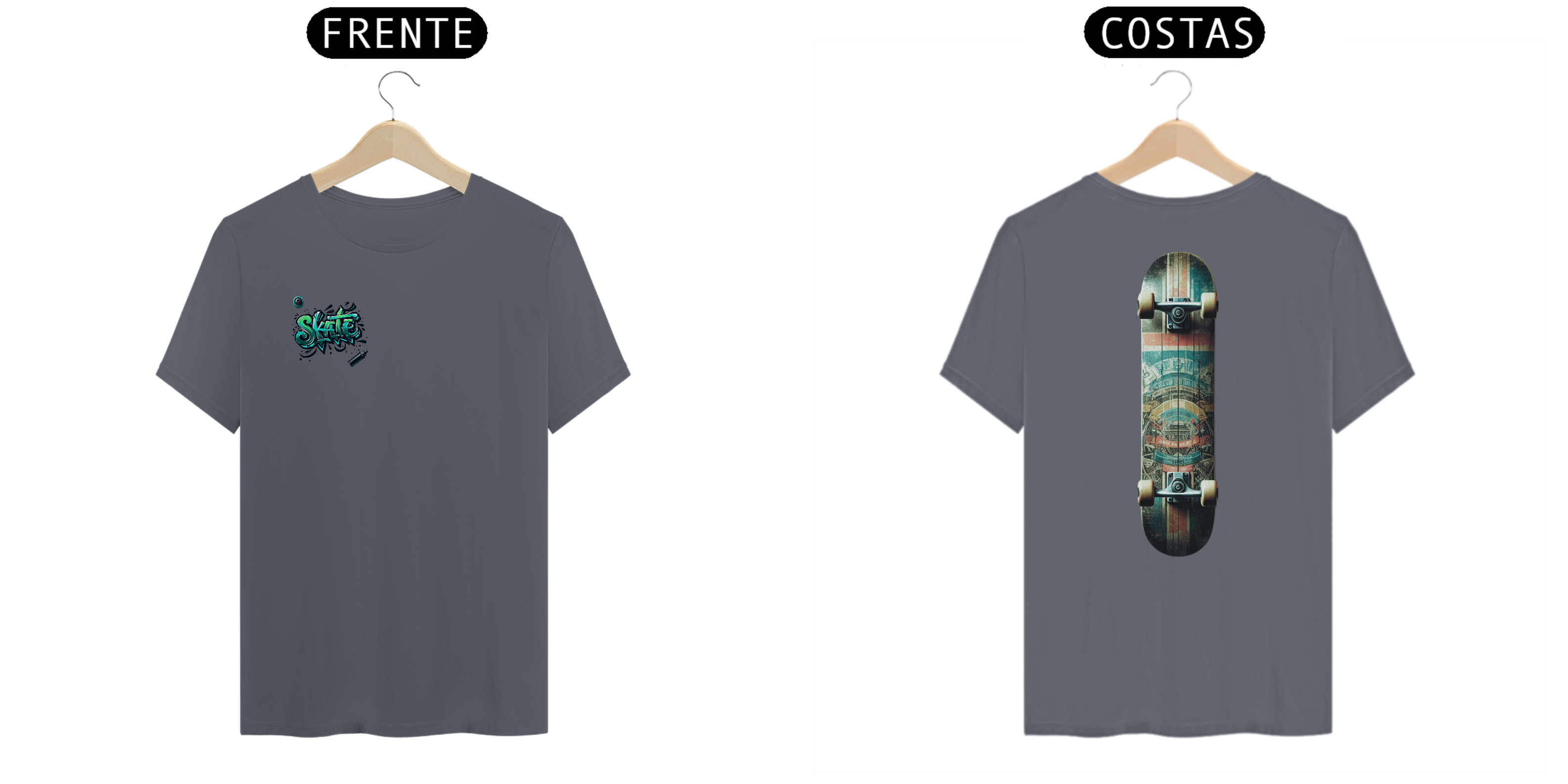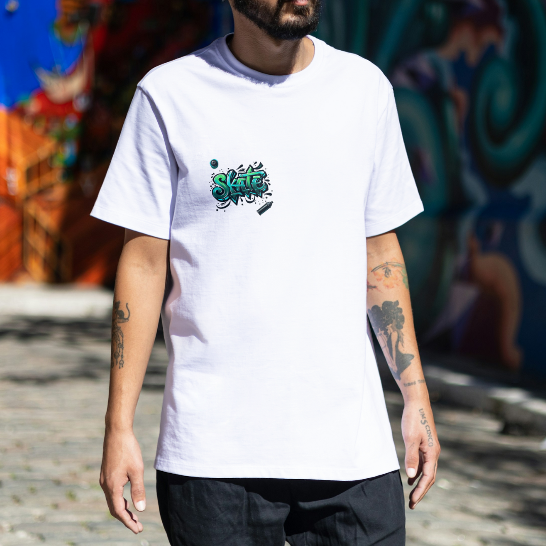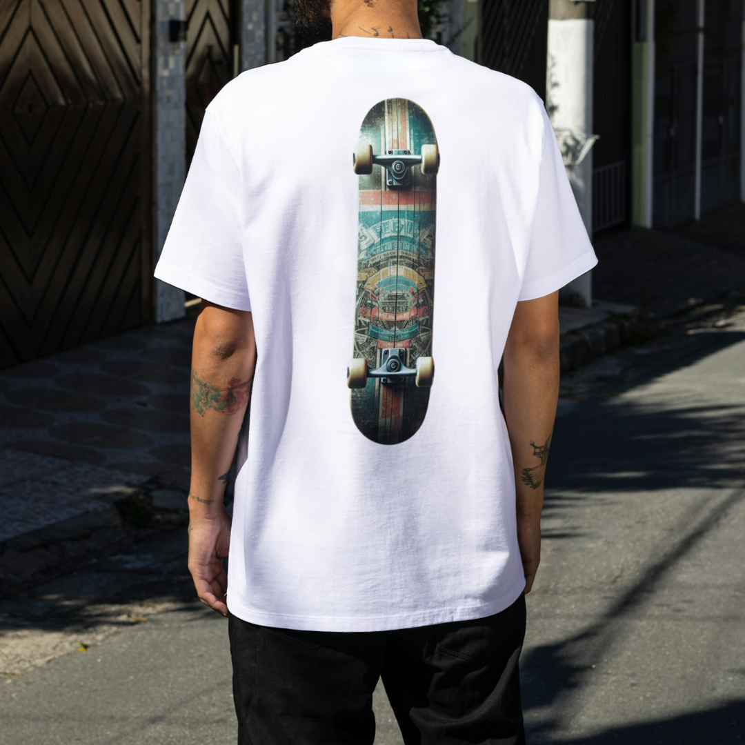 Essa é para os apaixonados pelo skate. Nossa T-shirt Skate A exclusiva, projetada especialmente para skatistas que buscam estilo e conforto. Com uma estampa arrojada e dinâmica, inspirada na cultura urbana, esta camiseta é perfeita para quem vive e respira o skate.